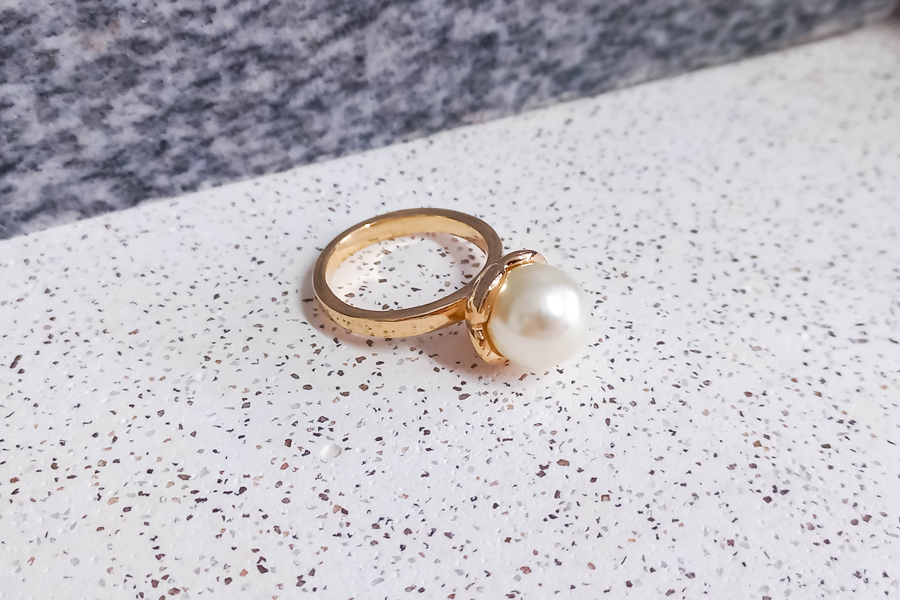 ANEL BANHADO EM OURO, PÉROLA SHELL 12mm DIÂMETRO