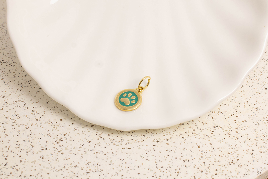 PINGENTE BANHADO EM OURO, PATA 10mm DIÂMETRO, COM RESINA COLORIDA