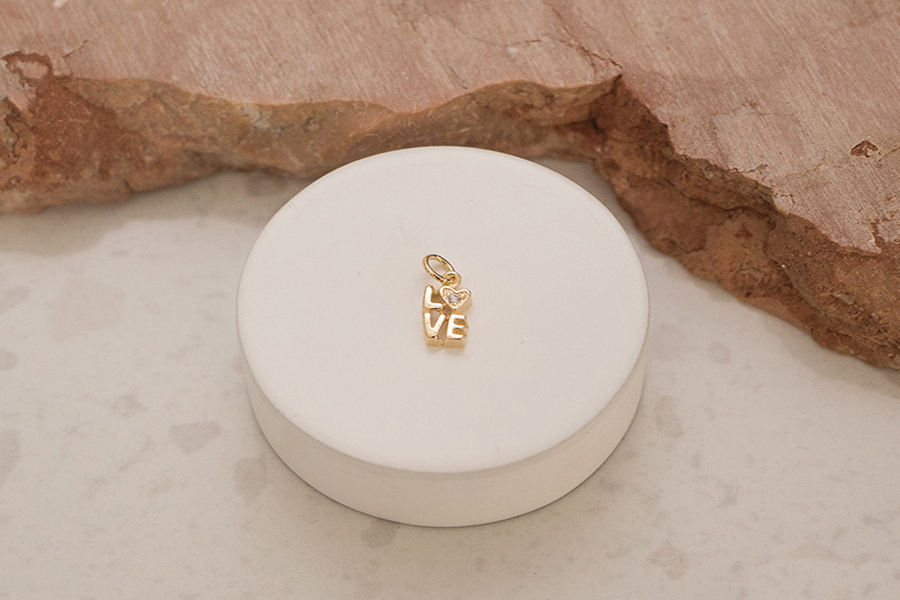 PINGENTE BANHADO EM OURO, LETRA L, 53mm ALTURA, BASE CRAVEJADA