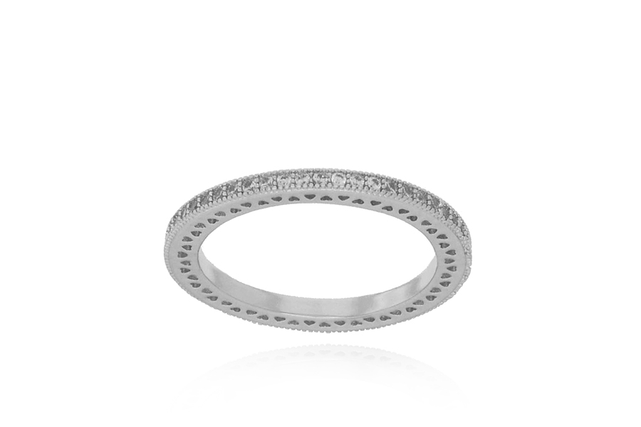 ALIANÇA EM PRATA, ARO TODO CRAVEJADO E BORDAS LISAS, 2mm LARGURA