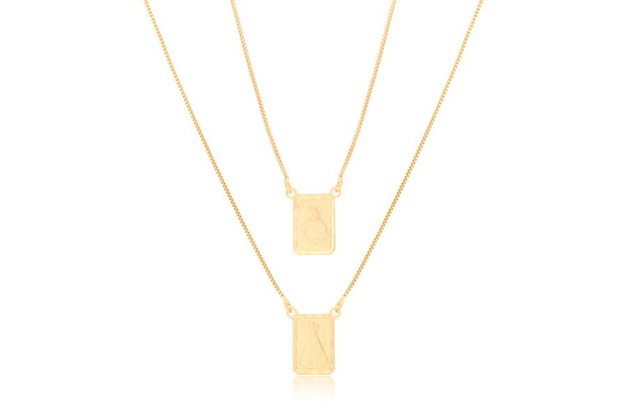 ESCAPULÁRIO EM PRATA, SAGRADO CORAÇÃO DE JESUS E NOSSA SENHORA DO CARMO, RETANGULAR 9,50mm LARGURA, ELO GRUMET, 60cm COMPRIMENTO