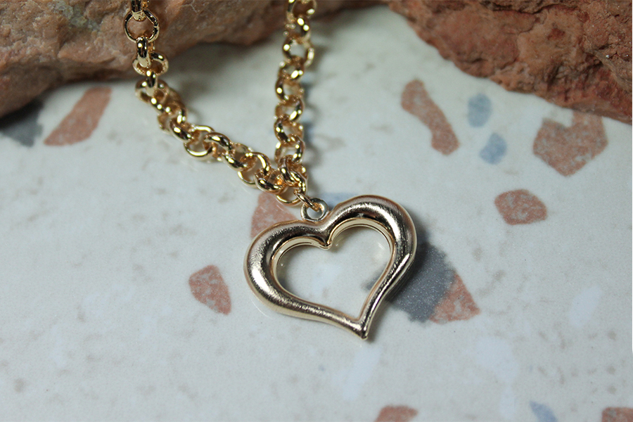 PULSEIRA BANHADA EM OURO, ELO 2,30mm LARGURA, 16cm COMPRIMENTO, EXTENSOR 5cm COMPRIMENTO E CORAÇÃO 7mm LARGURA, PARA QUALQUER COR