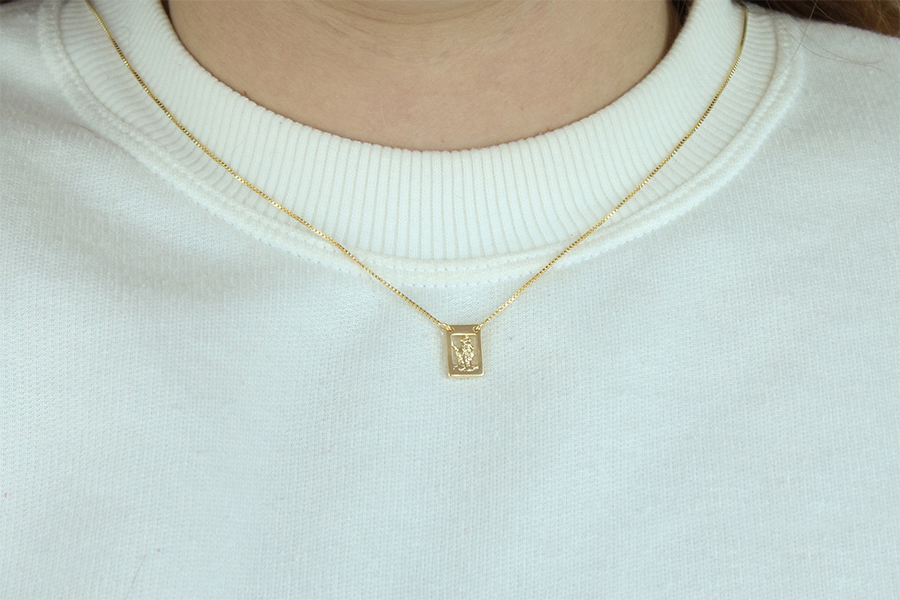 GARGANTILHA BANHADA EM OURO, ELO 3mm LARGURA, 60cm COMPRIMENTO E RELICÁRIO 14X12mm