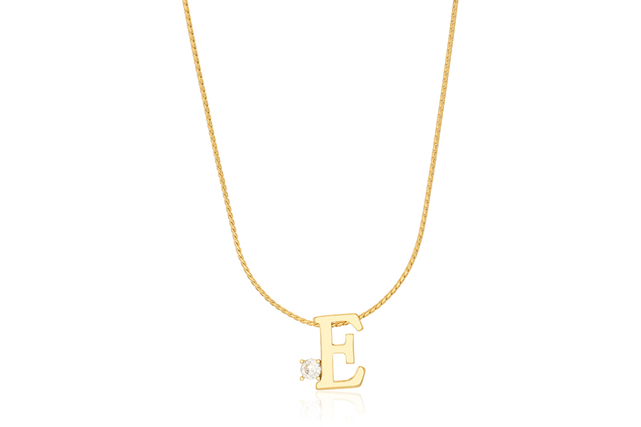 GARGANTILHA BANHADA EM OURO, ELO 0,70mm, 40cm COMPRIMENTO, EXTENSOR 10cm COMPRIMENTO, LETRA R, 11mm ALTURA E PONTO DE LUZ 3mm