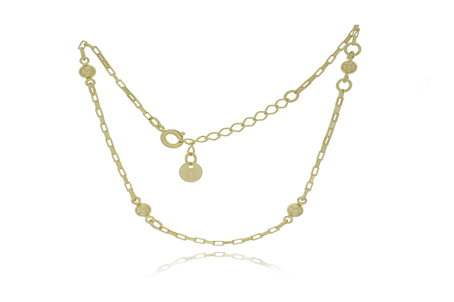 TORNOZELEIRA BANHADA EM OURO, ELO PORTUGUÊS 3mm, 22cm COMPRIMENTO E PONTO DE LUZ 8mm