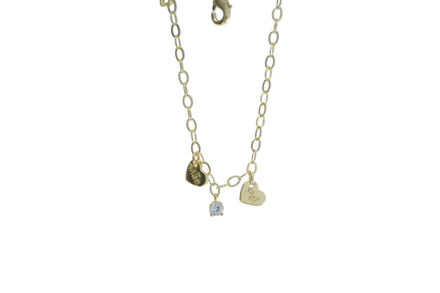 PULSEIRA BANHADA EM OURO, ELO OVAL 9,50x6,50mm, CORAÇÃO 9mm LARGURA, E SAPATO 15mm COMPRIMENTO