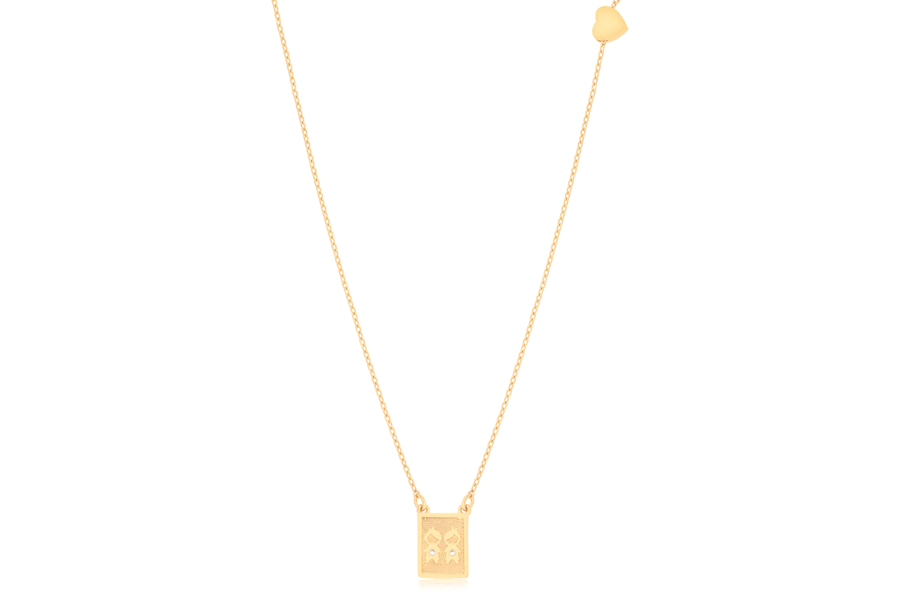 GARGANTILHA BANHADA EM OURO, ELO VENEZIANA 0,80mm, 40cm COMPRIMENTO, EXTENSOR 5cm COMPRIMENTO E TREVO 9mm LARGURA, COLEÇÃO ÍCONES