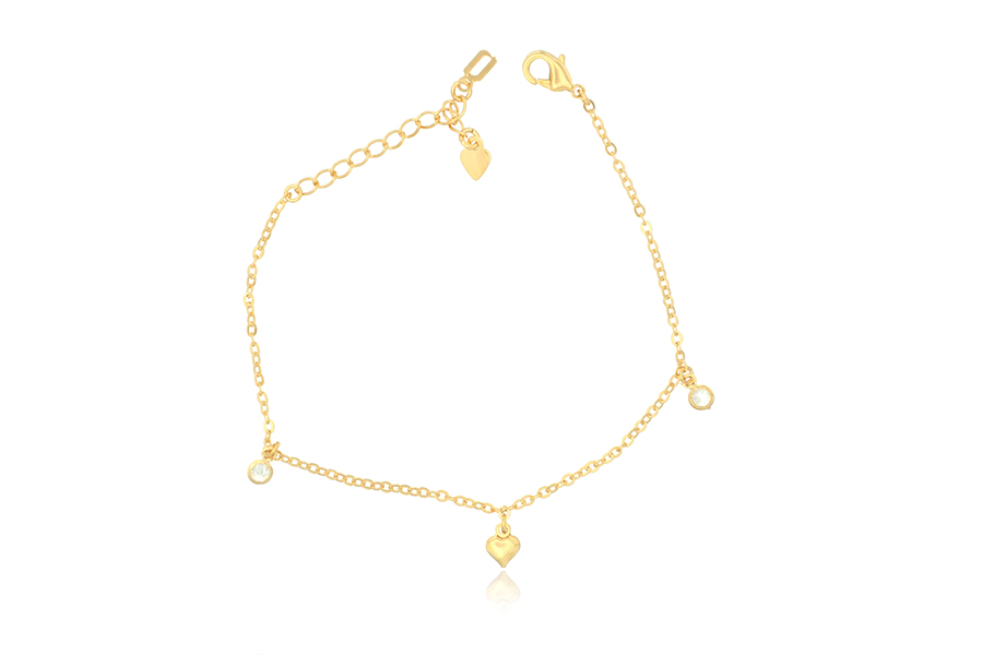 PULSEIRA BANHADA EM OURO, ELO 2,30mm LARGURA, 16cm COMPRIMENTO, EXTENSOR 5cm COMPRIMENTO E CORAÇÃO 7mm LARGURA, PARA QUALQUER COR