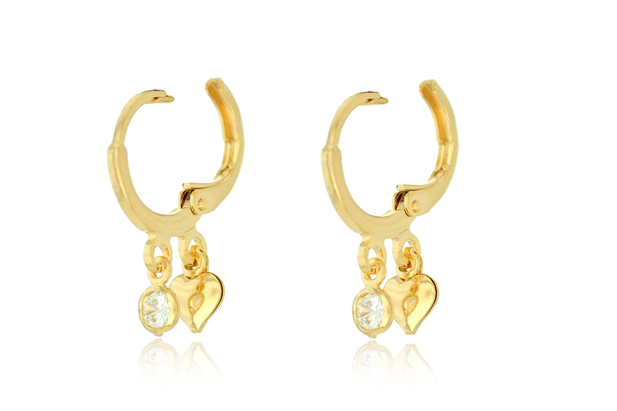 BRINCO BANHADO EM OURO, CORAÇÃO ZIRCÔNIA 6X6mm, PARA QUALQUER COR DE PEDRA