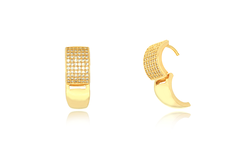 BRINCO BANHADO EM OURO, 21mm ALTURA COM 54 ZIRCÔNIAS