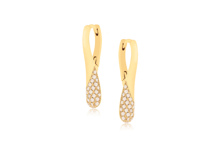 BRINCO BANHADO EM OURO, BASE 8,50mm ALTURA, 3,80mm LARGURA E PEDRA GOTA 8X5mm