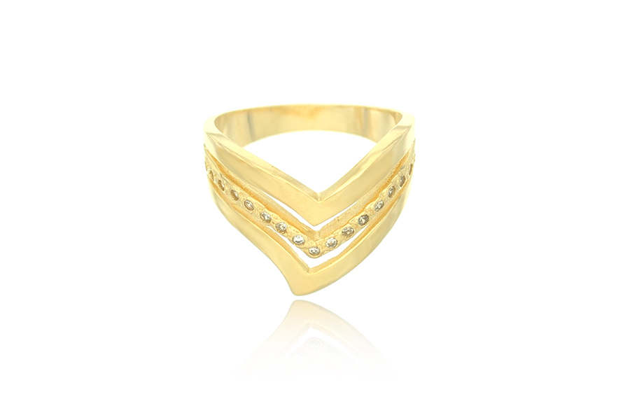 ANEL BANHADO EM OURO, APARADOR DUPLO COM 2 FILEIRAS DE ZIRCÔNIAS CADA