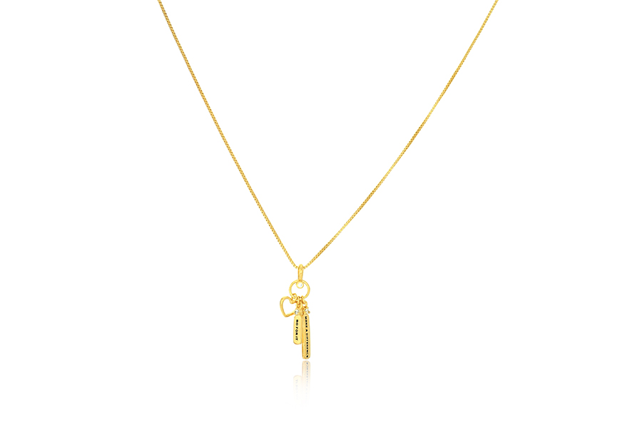 GARGANTILHA BANHADA EM OURO, ELO 1,20mm LARGURA, 40cm COMPRIMENTO, EXTENSOR 10cm COMPRIMENTO E CORAÇÃO 7mm LARGURA, PARA QUALQUER COR