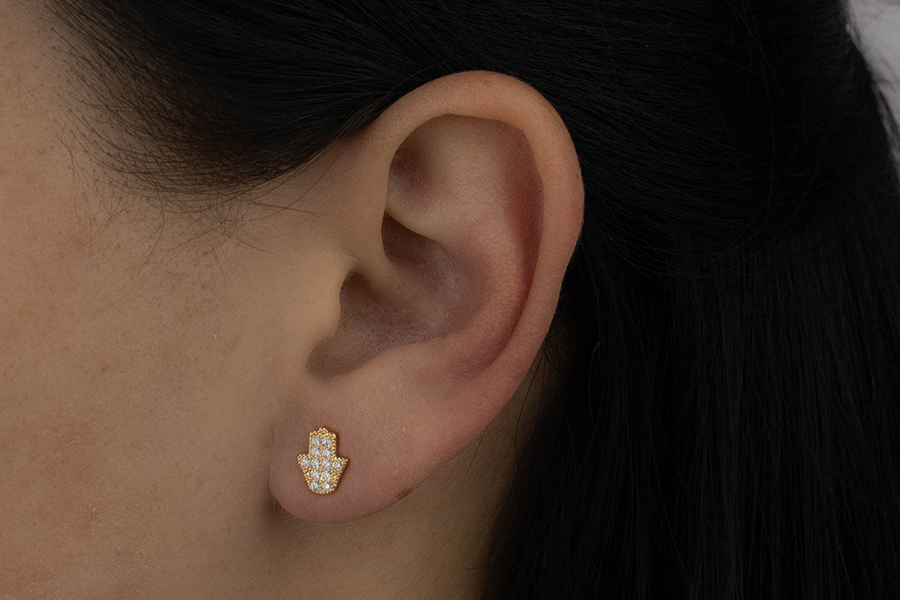 BRINCO BANHADO EM OURO, PONTO DE LUZ 5mm E CRAVAÇÃO INGLESA