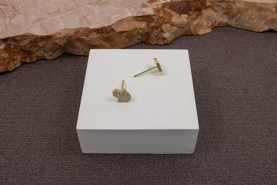 BRINCO BANHADO EM OURO, CORAÇÃO ZIRCÔNIA 6X6mm, PARA QUALQUER COR DE PEDRA