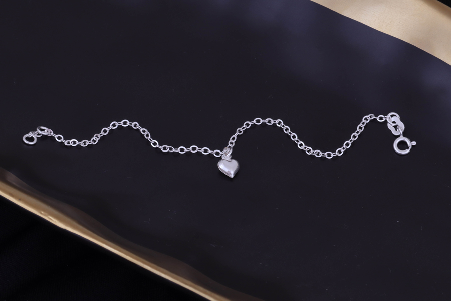 PULSEIRA EM PRATA, BERLOQUEIRA, FECHO CORAÇÃO LISO, ELO RABO DE RATO 2,30mm ESPESSURA, 18cm COMPRIMENTO