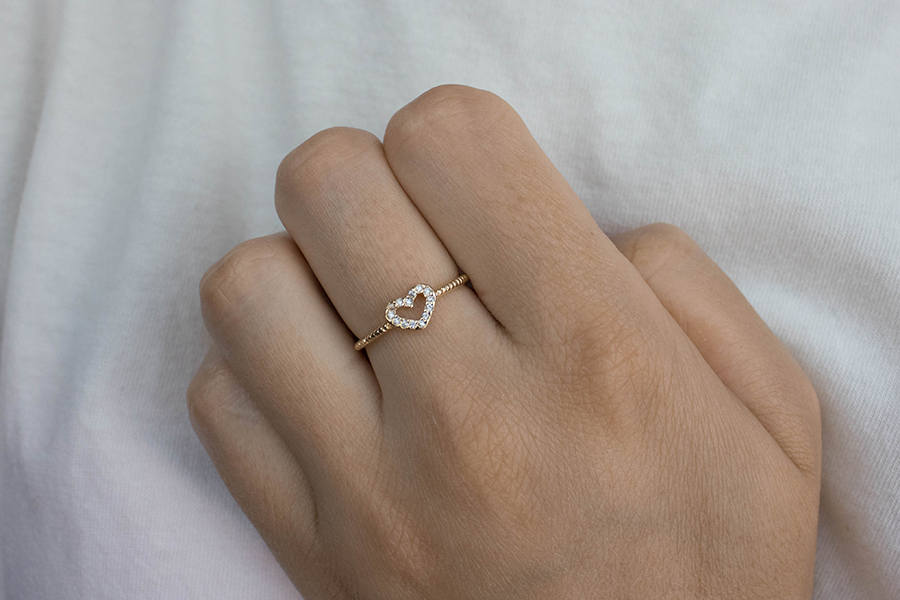 ANEL BANHADO EM OURO, CORAÇÃO 4mm ALTURA