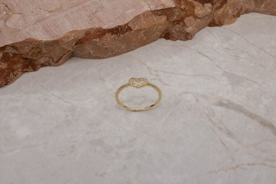 ANEL BANHADO EM OURO, CORAÇÃO E ZIRCÔNIA 3mm LARGURA