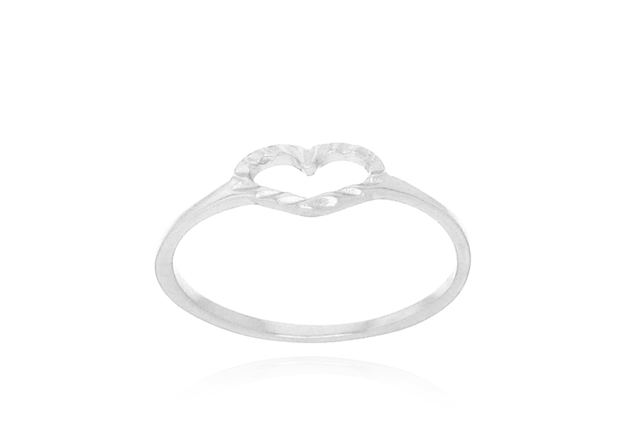 ANEL EM PRATA, 2 FIOS, CORAÇÃO VAZADO CRAVEJADO