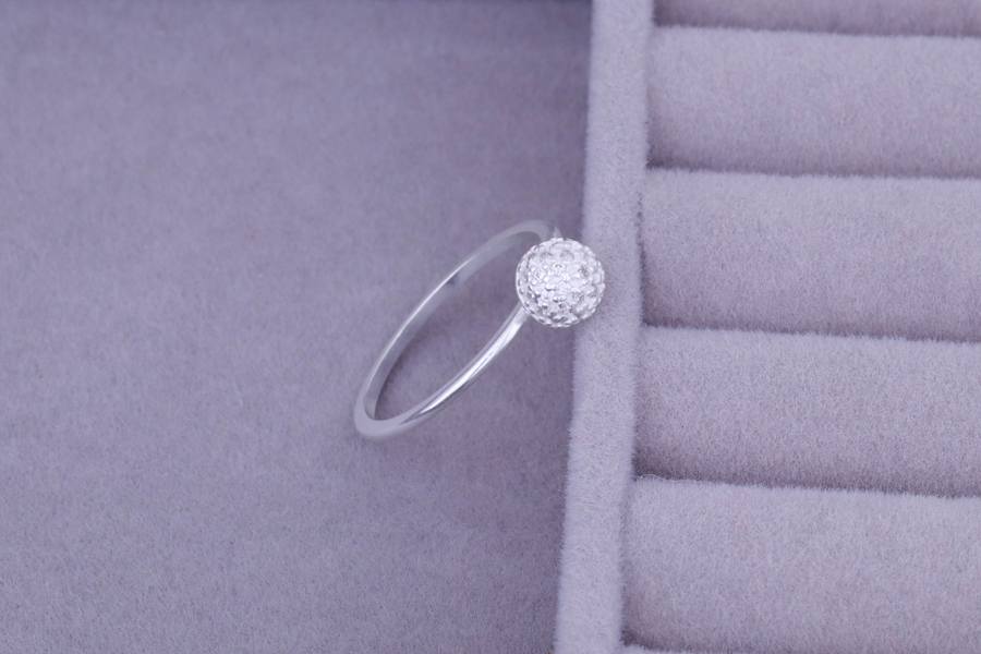 ANEL EM PRATA, REDONDO CRAVEJADO 6mm DIÂMETRO