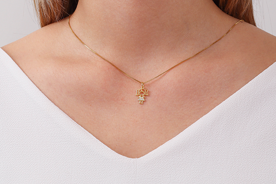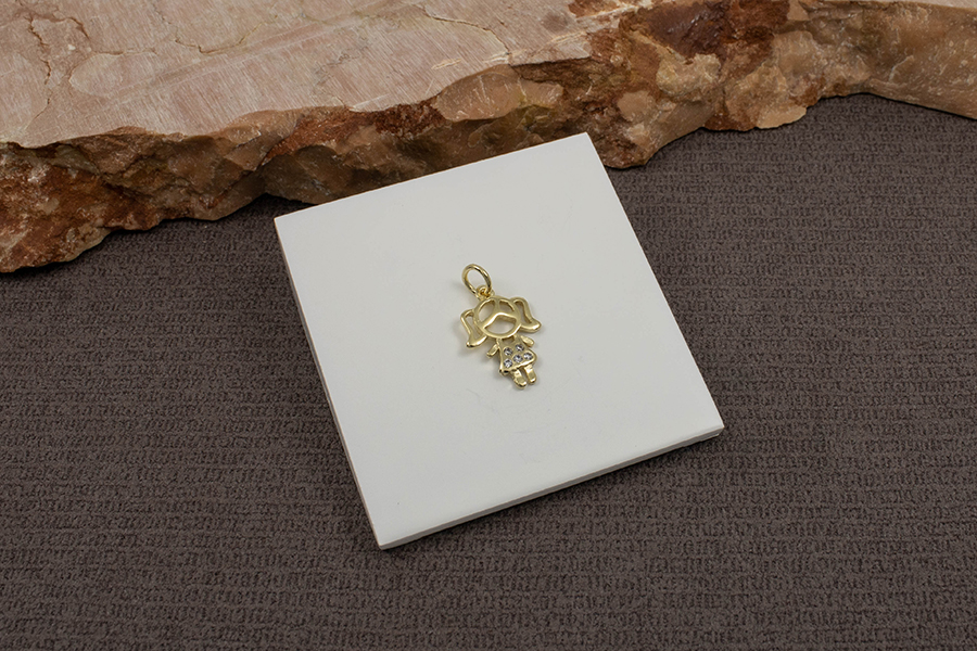 PINGENTE BANHADO EM OURO MENINA COM 10 ZIRCÔNIAS E 24mm ALTURA
