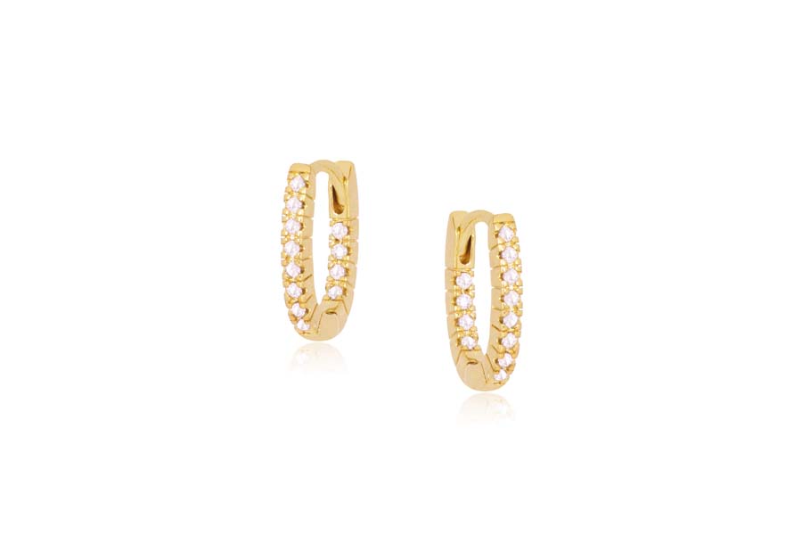 BRINCO BANHADO EM OURO, OVAL 7X5mm, COM 11 ZIRCÔNIAS BRANCAS OU NEGRAS