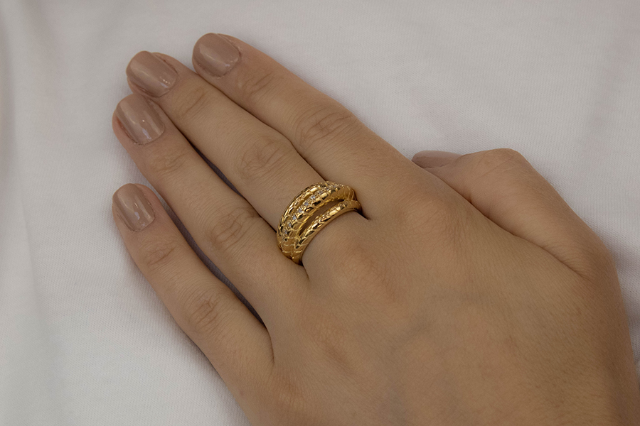 ANEL BANHADO EM OURO, COM ZIRCÔNIAS