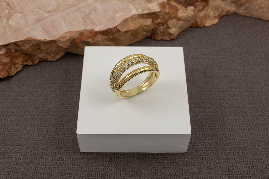 ANEL BANHADO EM OURO, COM ZIRCÔNIAS, 19,50mm LARGURA