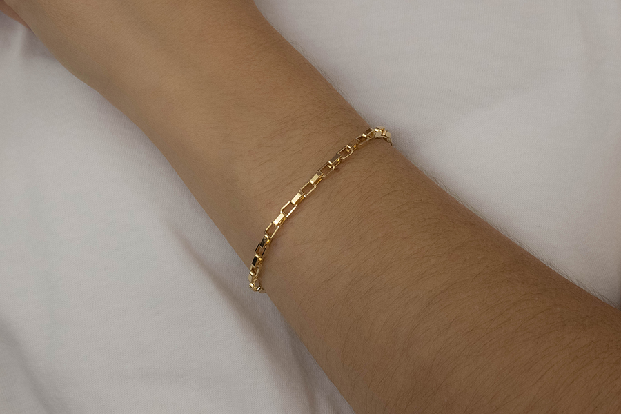 PULSEIRA BANHADA EM OURO, CORRENTE ELO CARTIER 4,30x2,80mm, 16cm COMPRIMENTO, EXTENSOR 5cm COMPRIMENTO E PESO 3,10g