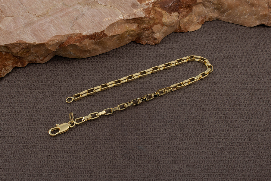 PULSEIRA BANHADA EM OURO, CORRENTE ELO PORTUGUÊS 5mm, 17cm COMPRIMENTO, EXTENSOR 5cm COMPRIMENTO E PESO 4,60g