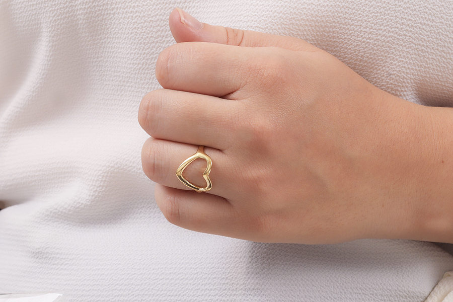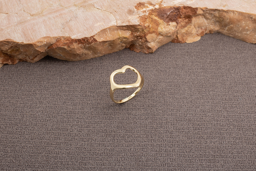 ANEL BANHADO EM OURO, CORAÇÃO 5,70mm ALTURA