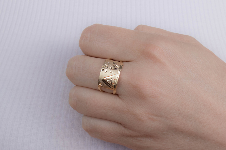 ANEL BANHADO EM OURO, FIOS CRUZADOS, 12mm LARGURA