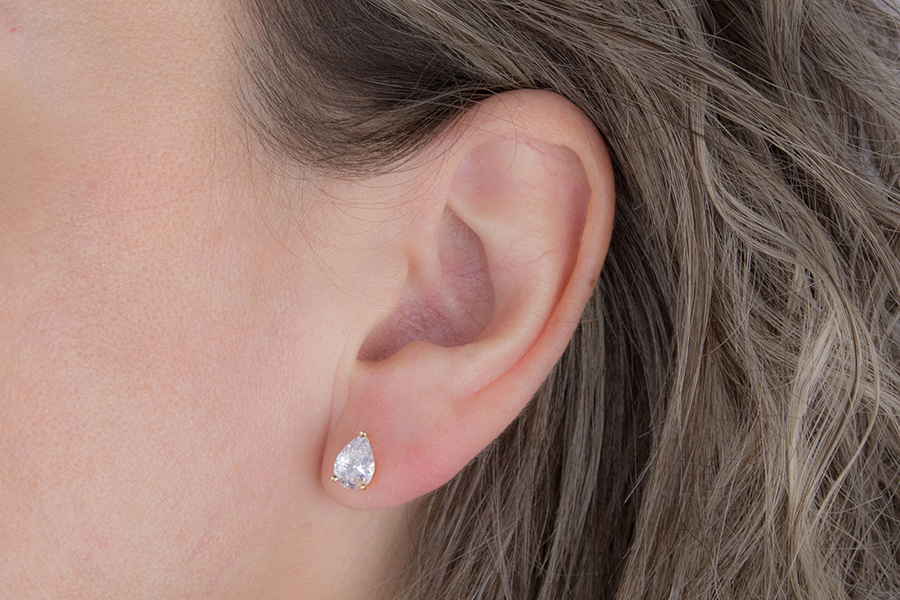 BRINCO BANHADO EM OURO, GOTA 10X7mm, PARA QUALQUER COR DE PEDRA