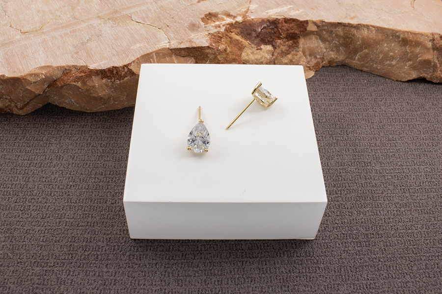 BRINCO BANHADO EM OURO, CORAÇÃO ZIRCÔNIA 4X4mm, PARA QUALQUER COR DE PEDRA