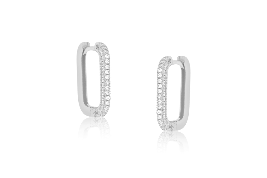 BRINCO BANHADO EM PRATA LEVE, ARGOLINHA RETANGULAR 13x10mm
