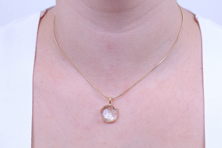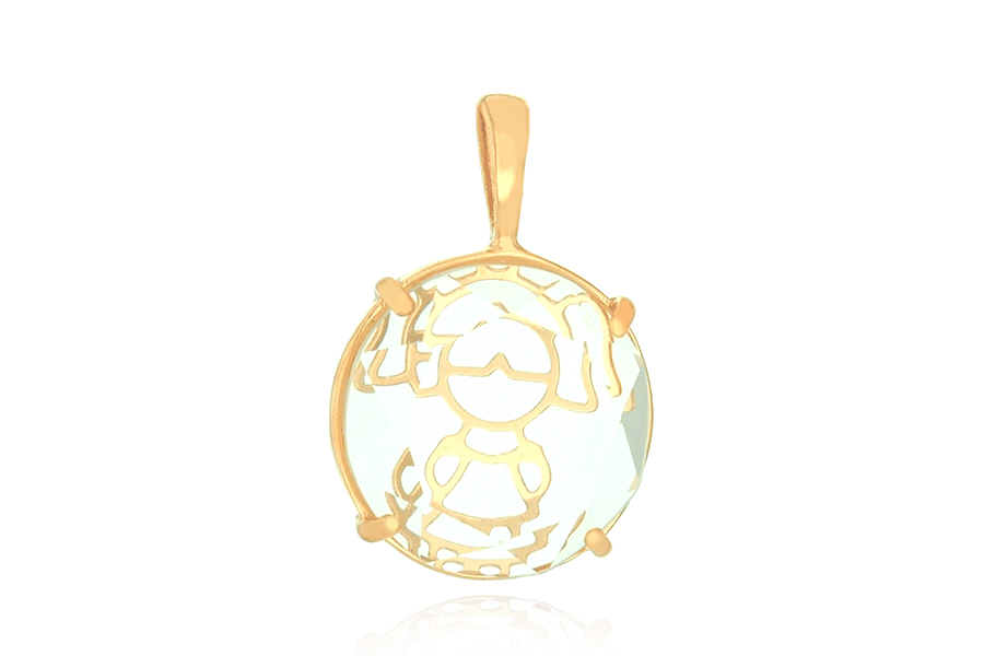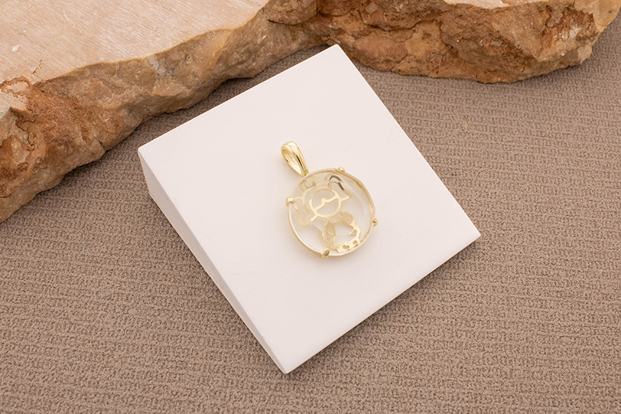 PINGENTE BANHADO EM OURO CRISTAL 16mm DIÂMETRO, BONECOS