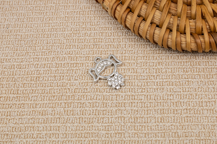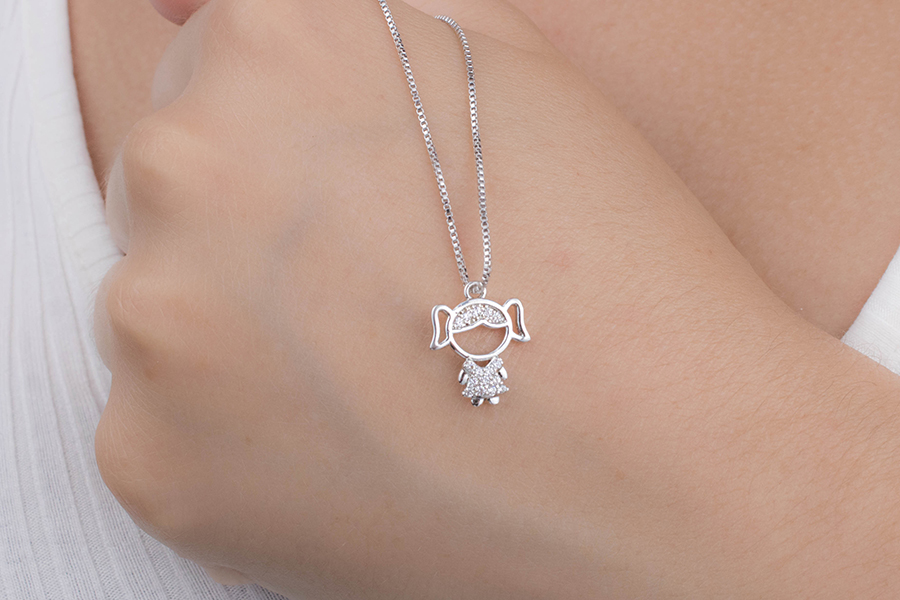 PINGENTE RÓDIO BRANCO, MENINA 15mm ALTURA COM 16 ZIRCÔNIAS