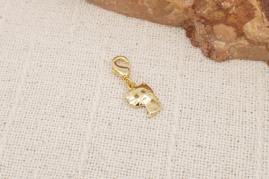 PINGENTE BANHADO EM OURO GATO 12mm ALTURA COM FECHO LAGOSTA