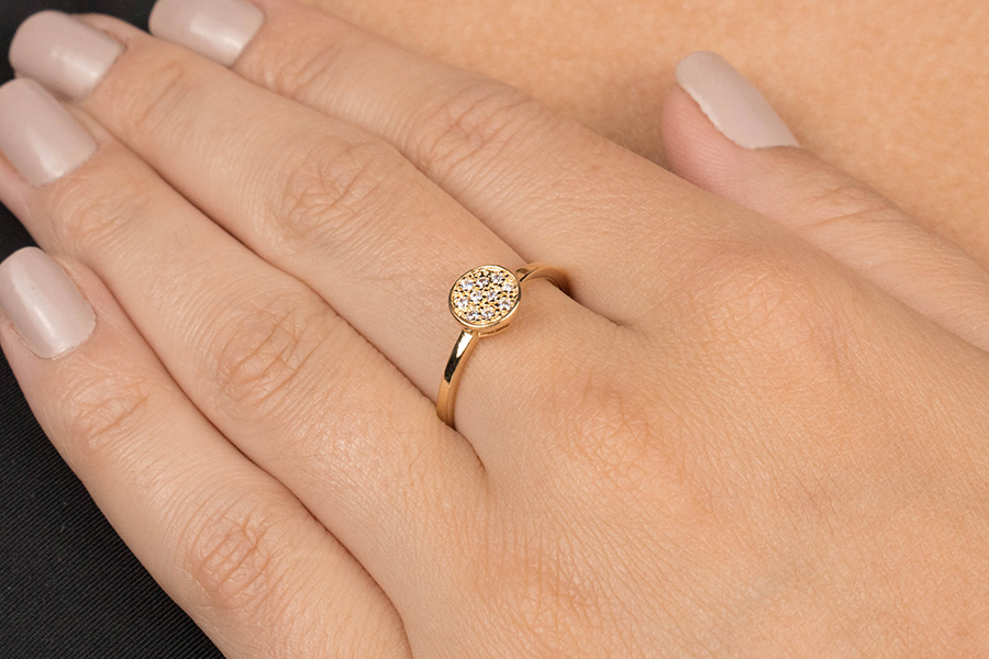 ANEL BANHADO EM OURO, ZIRCÔNIAS 3 E 2mm