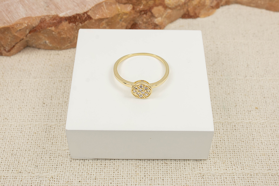 ANEL BANHADO EM OURO, COM ZIRCÔNIA