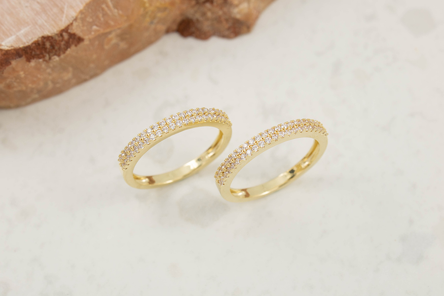 ANEL BANHADO EM OURO, APARADOR UNITÁRIO, 8mm LARGURA, COM 7 FILEIRAS DE ZIRCÔNIAS