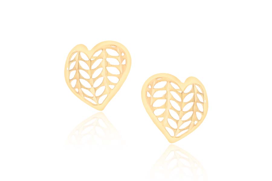 BRINCO BANHADO EM OURO, INFANTIL, CORAÇÃO 4,50mm LARGURA, COM TARRAXA BABY