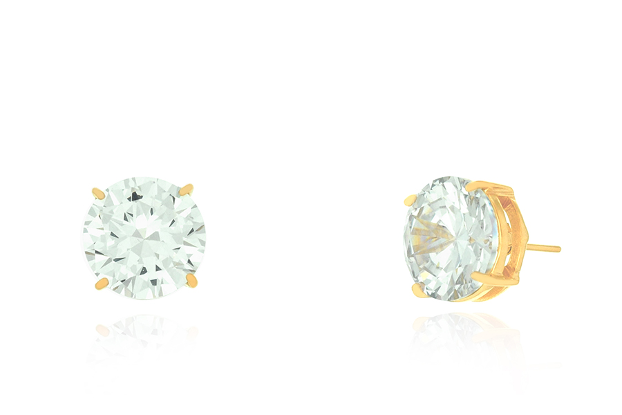 BRINCO BANHADO EM OURO, PONTO DE LUZ 5mm E CRAVAÇÃO INGLESA