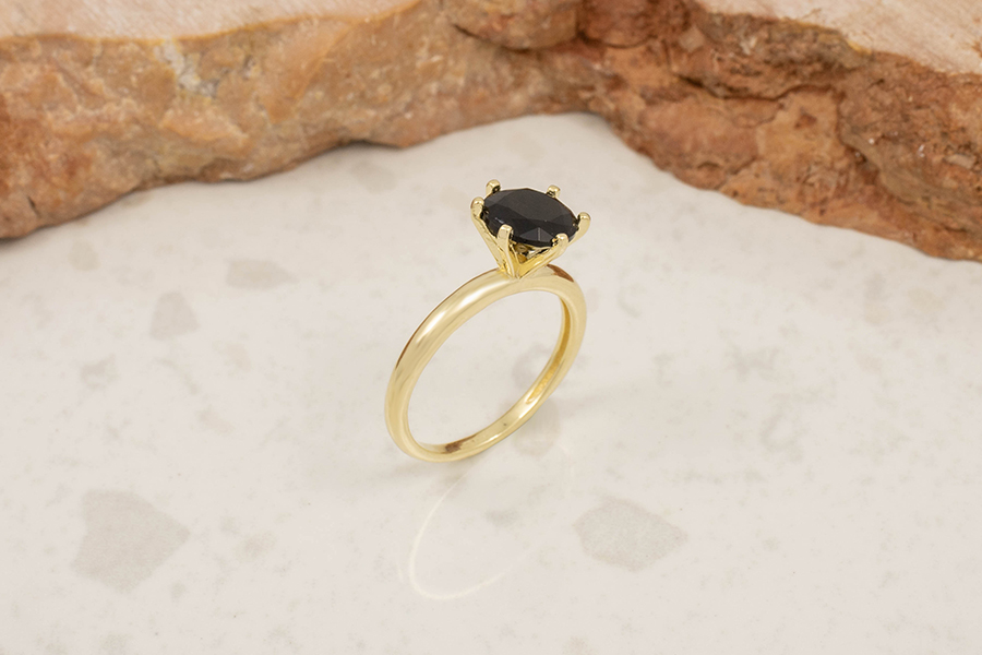 ANEL BANHADO EM OURO, SOLITÁRIO 10mm, ESTOQUE TRADICIONAL