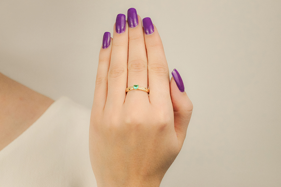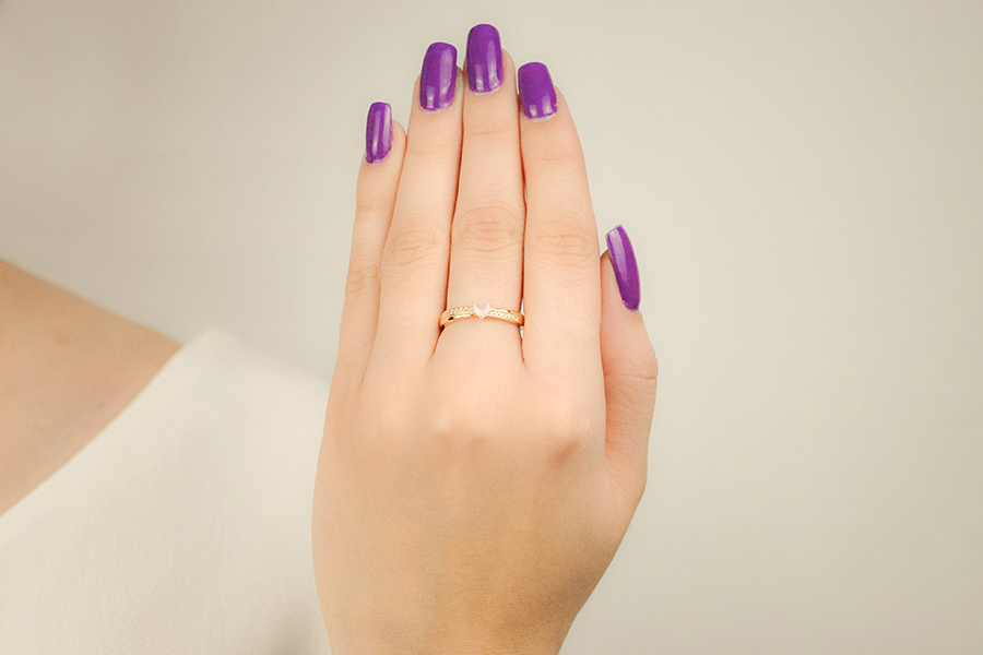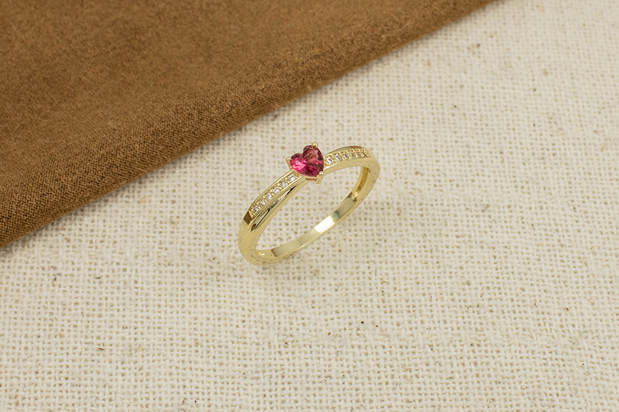 ANEL BANHADO EM OURO CORAÇÃO ZIRCÔNIA 4X4mm PARA QUALQUER COR DE PEDRA