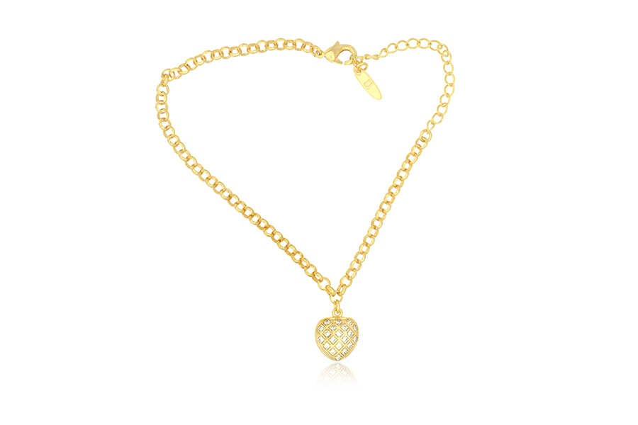 PULSEIRA BANHADA EM OURO, ELO 2,30mm LARGURA, 16cm COMPRIMENTO, EXTENSOR 5cm COMPRIMENTO E CORAÇÃO 7mm LARGURA, PARA QUALQUER COR