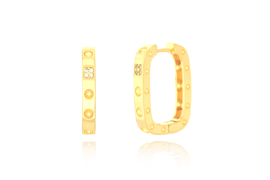 BRINCO BANHADO EM PRATA LEVE, ARGOLINHA RETANGULAR 15x12mm