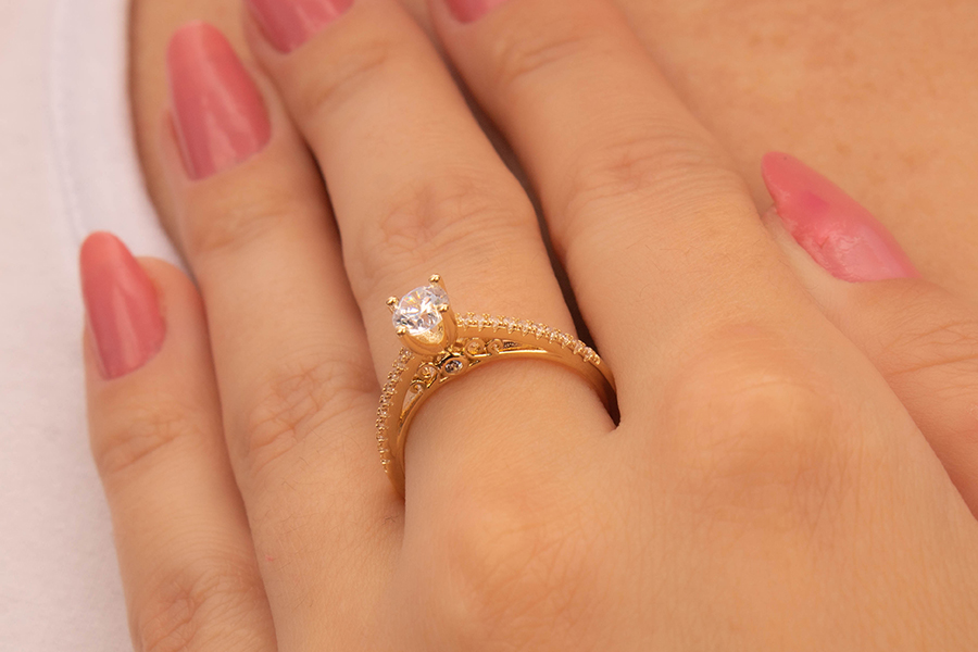 ANEL BANHADO EM OURO, ZIRCÔNIAS 3 E 2mm
