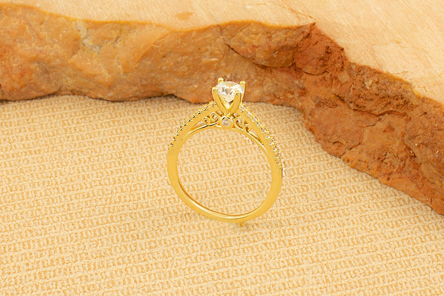 ANEL BANHADO EM OURO ZIRCÔNIA REDONDA 8mm PARA QUALQUER COR DE PEDRA