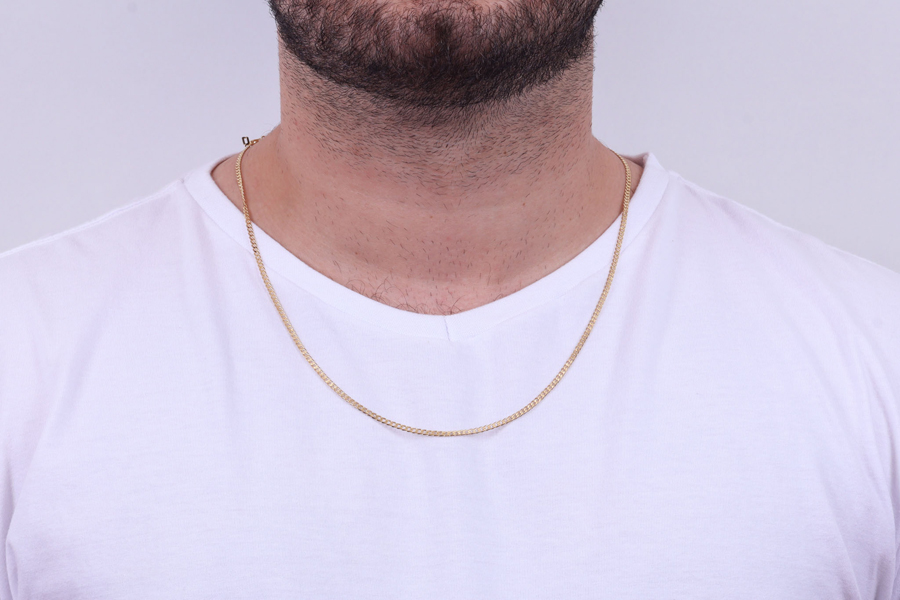 CORRENTE BANHADA EM OURO, ELO PORTUGUÊS 1,80mm, 45cm COMPRIMENTO, EXTENSOR 5cm COMPRIMENTO E PESO 3,40g